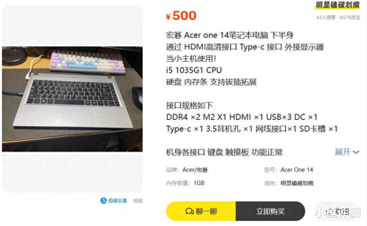 笔记本的下半身,除了压泡面,还能干嘛?我在二手鱼刷到个神奇玩意儿:有人500块在卖宏碁Acer One 14的“下半身”,就是不带屏幕的那部分,让你接个显示器当小主机用。所以说二手鱼里,永远都会有你想象不到的玩意。